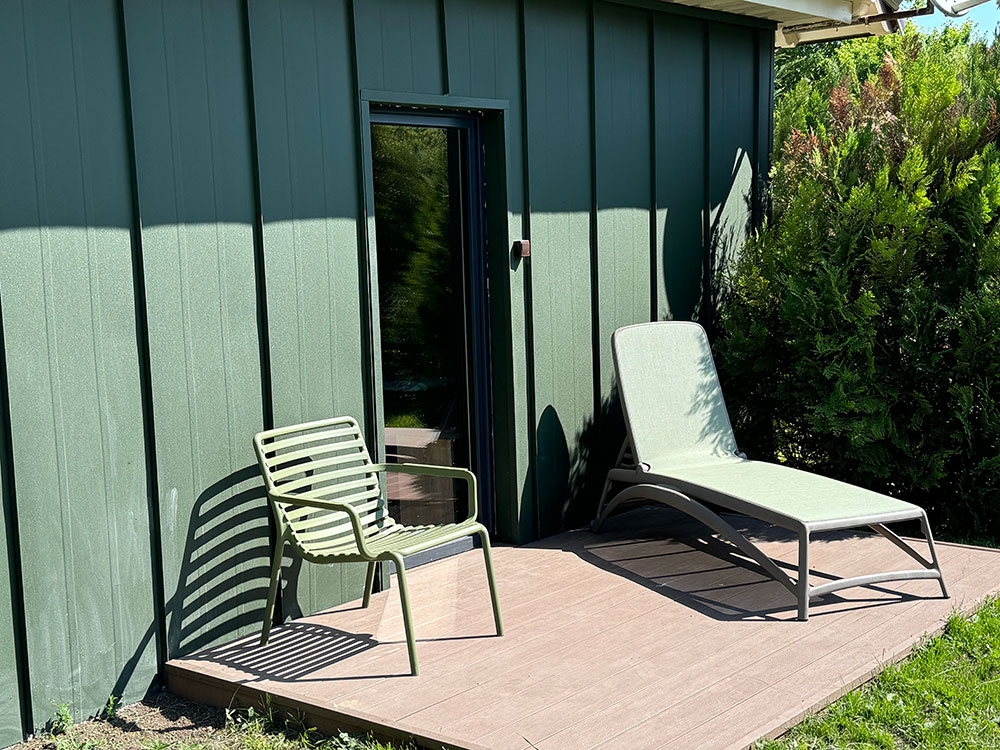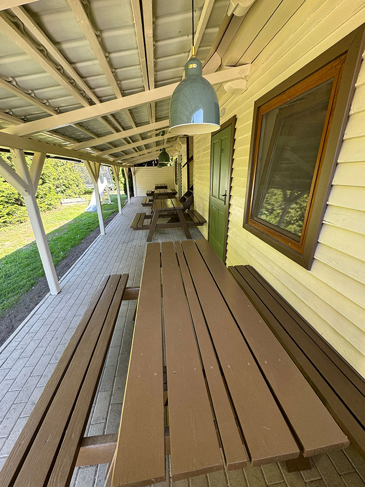 Parkování je možné u chaty a blízko je také stánek s posezením a grilem, lehátka, sportovní potřeby si návštěvník může půjčit na recepci ).