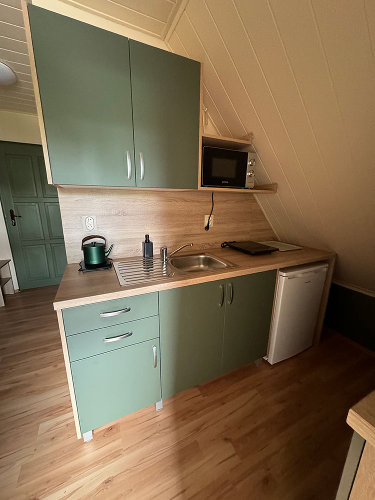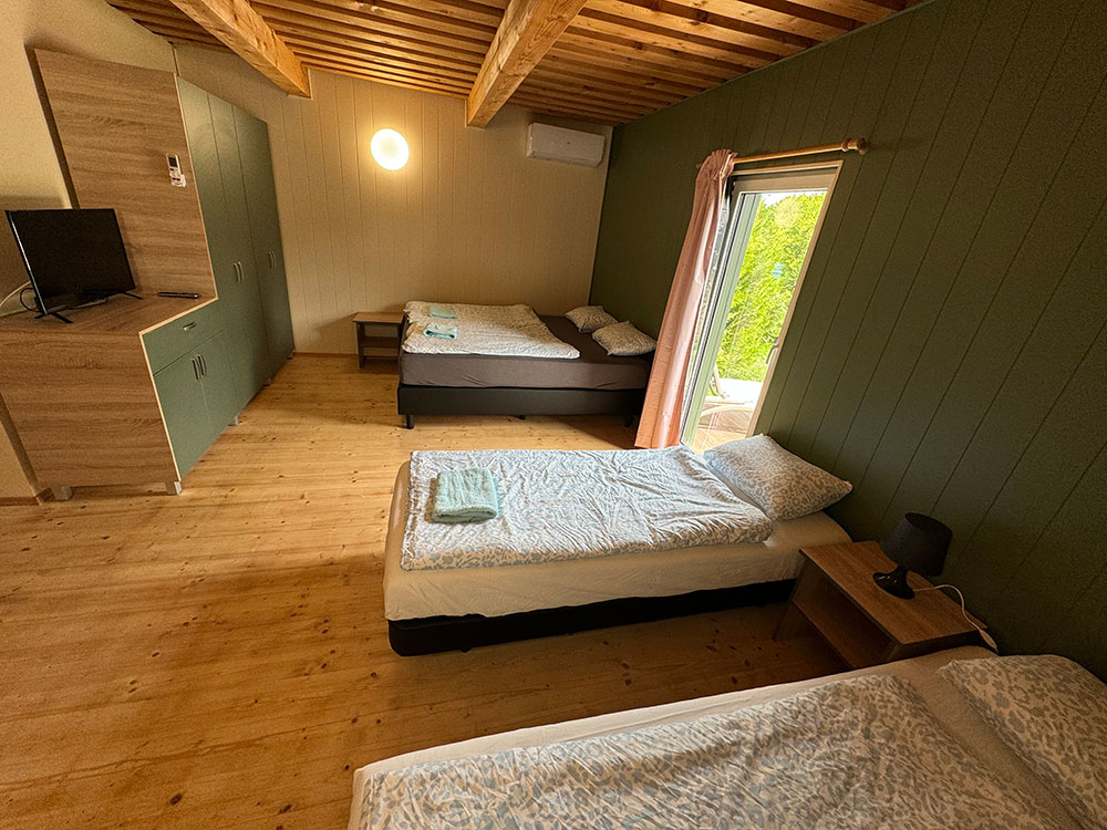2 x 3-lůžková prostorné apartmány, se nacházejí na patře 2 x 4 lůžkové apartmány jsou na přízemí kde je i třetí 3 lůžkový menší apartmán.