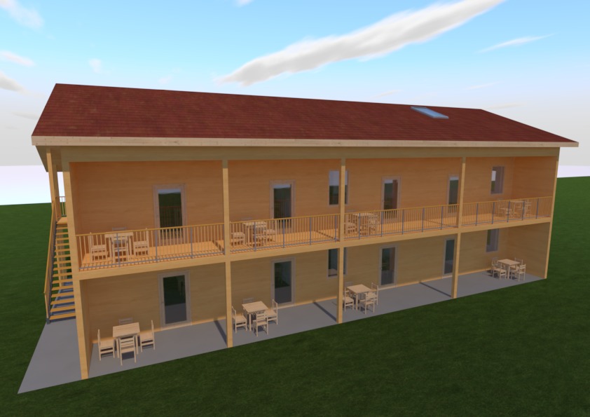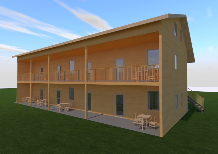 - 2 x ( 6 + 2 )mezonet, sestává ze tří ložnic o 20m2, obývací prostor vybavený kuchyňským koutem, samostané sociální zařízení, TV, WIFI, klimatizaci a venkovní posezení